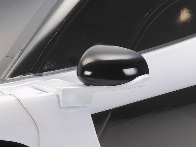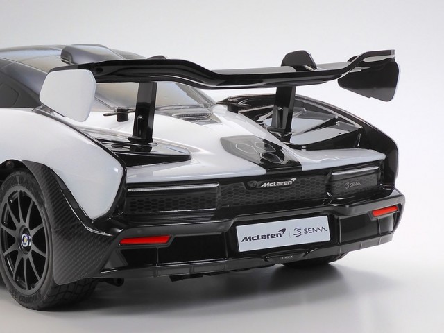 Formen på McLaren Senna er nøye gjengitt i gjennomsiktig polykarbonat, og sidespeilene og sidespeilene er laget av svart ABS.