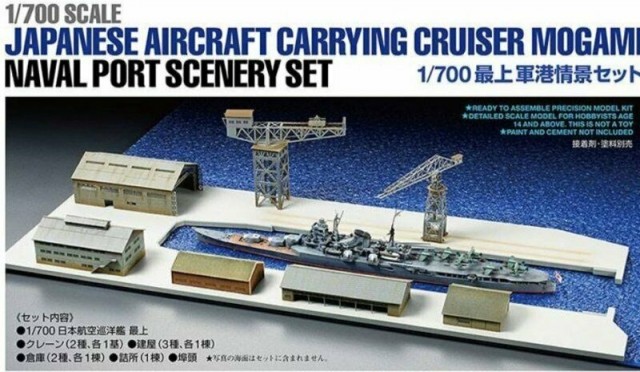 Make a superb diorama with the contents of this special kit, which pairs the Water Line Series Mogami (Item 31341) with detailed paper accessories depicting structures typically seen in naval ports of the era.