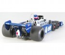 Model captures the unique form of the Tyrrell P34 with rear seat cowl, front brake cooling air duct, stabilizer, rear wing side plate, and taillight. Ford Cosworth DFV engine portrayed with the utmost detail.