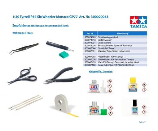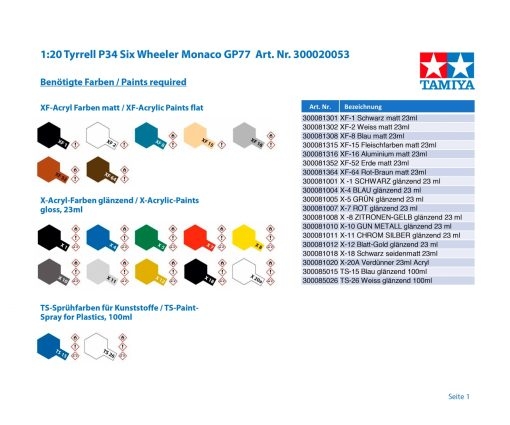 Byggesettet er i skala 1/20 viser Tyrrell P34 slik den så ut i Monaco GP, 1977 med samme halve motordeksel som fra forrige sesong.