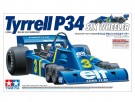 This Tamiya large-scale plastic model recreates the Tyrrell P34. Arguably the most radical design ever to compete in Formula 1, the Tyrrell P34 caused a sensation when it was revealed to the public. The car's designer, Derek Gardner, wanted to reduce drag by making the frontal area smaller, so instead of two normal-sized tires he used four small diameter tires that could be steered together. This also meant that the tires would be shrouded by the nose, further reducing drag. Making its debut at the 1976 Spanish GP, the car proved to be competitive, and it reached the pinnacle of its success with drivers Jody Scheckter and Patrick Depailler finishing 1st and 2nd respectively at the Swedish GP.