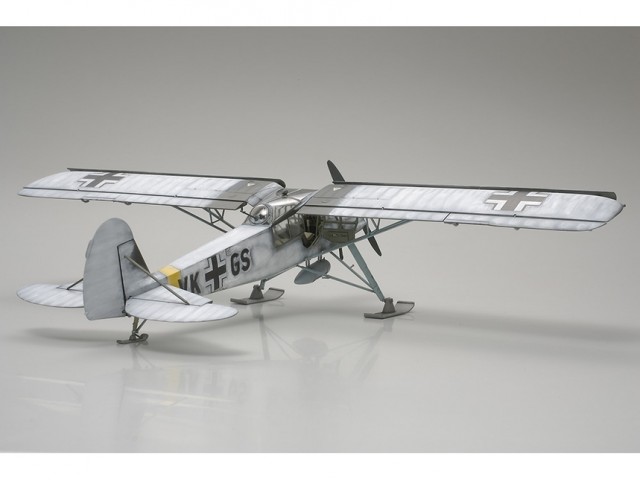About the Model This is an assembly kit of the Fieseler Fi156C Storch. ★Length 202mm, Wing Span 297mm. This model shows the Fi156C’s ability to take off and land in restricted areas. ★The main wing joins the Fieseler Fi156s delicate body at the canopy which is molded to the metal main wing spar and stilt. ★A choice of 3 kinds of canopies, belly tanks, and skis for winter. From the many extra parts provided, you are able to build a Fieseler Fi156C to your own liking. ★Choice of an open or closed embarkation hatch, as well as the position of the main wings flap, up or down. ★Has 5 kinds of markings for either General Rommels embarkation plane or the Mussolini rescue plane. ★Comes in a “Milestone 100th Release” package. |