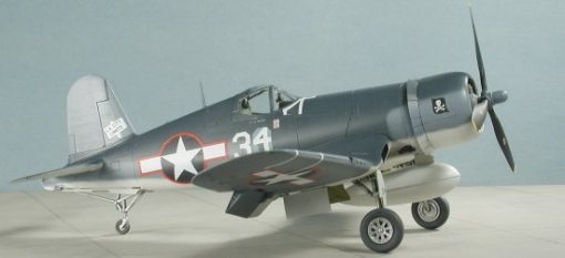 Despite these improvements, the new F6F Hell Cat was adopted as the main carrier-borne aircraft, and the first combat Corsairs became relegated to land based US Marine squadrons in the South Pacific. Major Boyington and 2nd Lieutenant Hanson of the U.S. Marines, Lt. Kepford of the Navy and other ace-pilots, bravely flew the F4U-1A into fierce air-combats, overpowering the Japanese Zero fighters with tremendous top speed and six 12.7mm heavy machine guns.