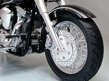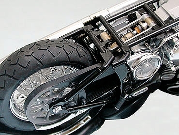• The delicate fins of the air-cooled engine, spoke wheels and the slender brake and clutch lines all add to the realism of this motorcycle masterpiece.