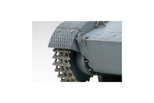 ★Length: 138mm, Width: 64mm ★Armor panels specific to each variant included. ★Assembly of additional armor plating parts is just like the construction of the actual tank. ★Hatches on the chassis and cover are recreated with separately-molded parts. ★Interior details such as gun breech, machine gun mount, and gun sight sharply depicted. ★Assembly-type tracks. ★Photo-etched parts for muffler cover. ★1 commander figure and 4 types of markings included.