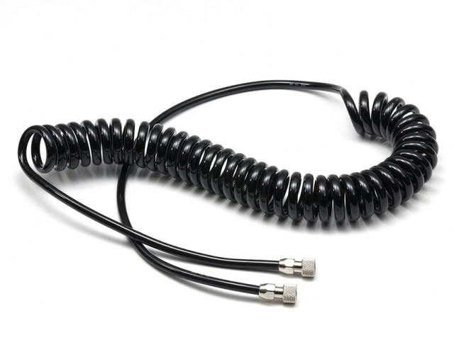 This coiled hose measures 1 meter at rest and extends up to 2 meters when fully stretched out. Made from durable urethane, it can be used in conjunction with high power air compressors. Joint size: PF1/8 (S).