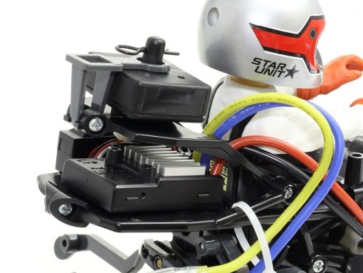 Med dette monteringssettet kan du bygge Dancing Rider, en ekstremt morsom 3-hjulsmodell som lener seg inn i svingene. Original modell som ble designet av den berømte japanske kunstneren Atsushi Arino. Den er støpt i lett polykarbonat, og kommer med en støpt førerfigur.