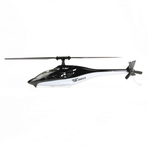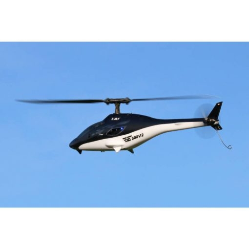 Fans of the popular ‘80s TV series Airwolf will instantly relate to the lines and livery of E-Sky’s fabulous full-function, full-fuselage, 300-size sport helicopter. Refreshingly solid, the 300 V2’s sleek, eye-catching design houses a raft of technology and innovation, the combined effect producing a model that not only has the hands-off stability of a coaxial machine but impressive speed and manoeuvrability, too. The key to it is a combination of flybarless rotor head (designed to reduce complexity and enhance performance) and 6-axis gyro (offering rock-steady flight in a variety of conditions). Both contribute to a model that handles beautifully, remains airborne for an impressive 5 to 7 minutes and offers a flight experience akin to a machine much larger in size. A full suite of bright LED lights, a ‘get out of jail’ throttle cut switch, solid undercarriage and uber-neat underslung battery hatch complete a very pretty picture, one that could have you questioning why you haven’t got an even larger helicopter in your fleet.